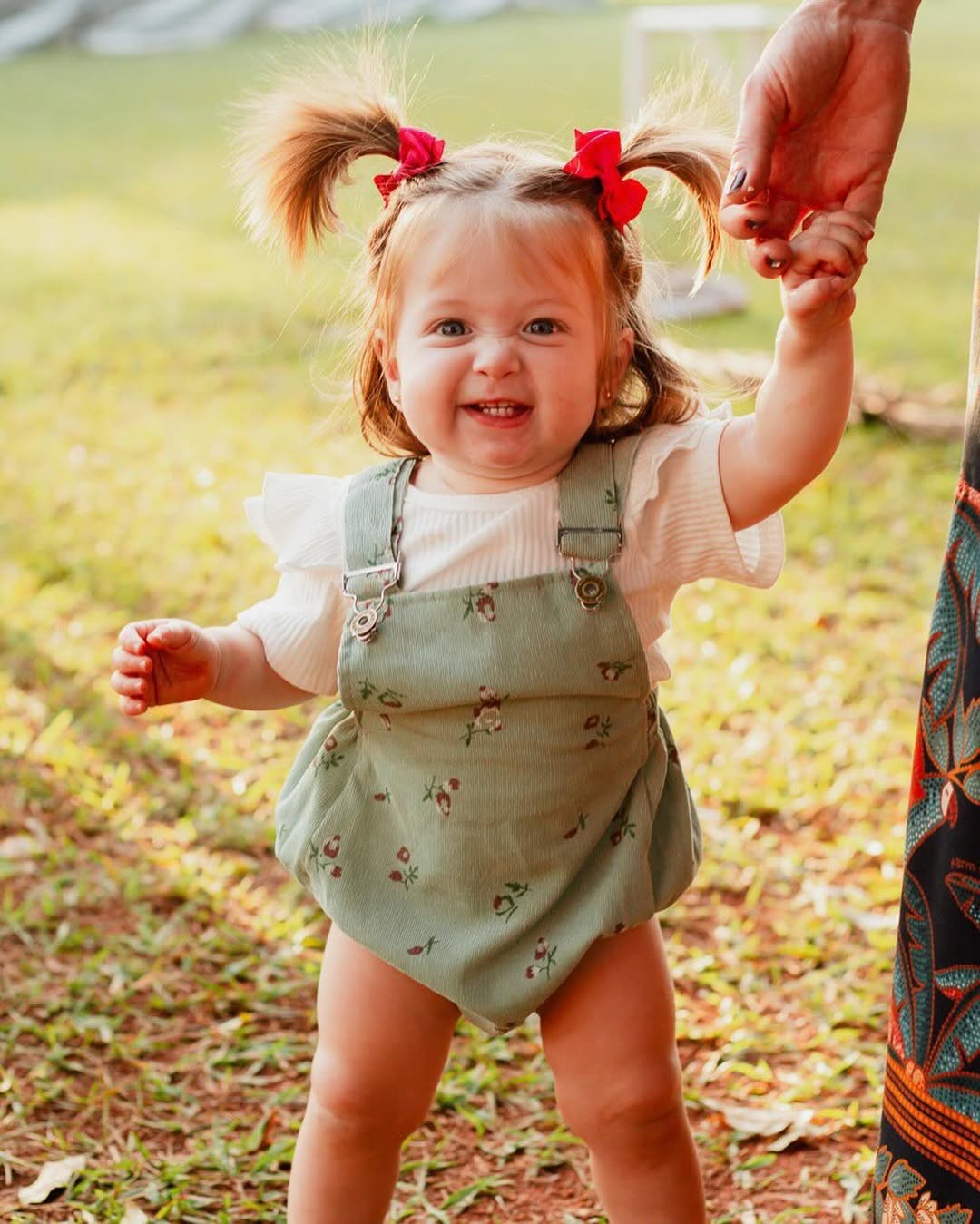 Includes a soft cotton-blend blouse and an adorable floral suspender romper β comfortable, practical, and full of sweetness.